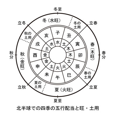 - 徐樂吾氏が説いている如く未月土用に土は旺じ、辰・戌・丑月の土用では「旺不旺」(旺とは言え旺じていない)です。従来から土の看方は大変難しいと云われて来ました。四季月の土旺と土用は峻別されるべきです。土の力量は、新しく開発した五行の旺衰細分数値化力量計算法によって、夫々の五行と共に旺衰強弱力量を誤まりなく明確に判別できます。